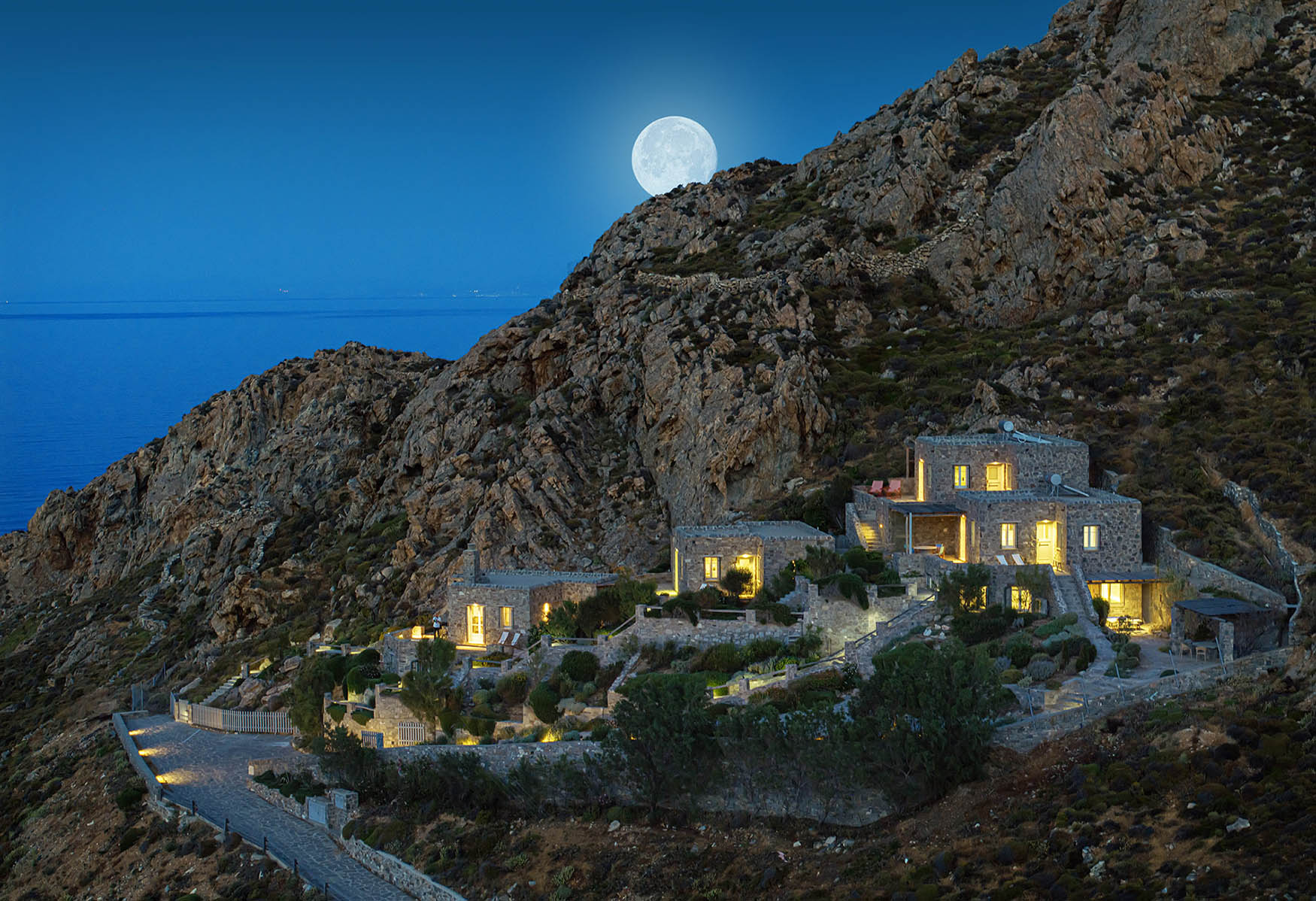 Aspes Villas is a 4-residence complex that stands on a sloping hillside over Psili Ammos beach, lined with tamarisk trees and awarded as Best Beach in 2003. Other famous beaches are within easy reach, Aghios Sostis, Lia and Ai Giannis. The location is such that although it can be a quiet retreat, it is also 2km (1.25 miles) away from the busy port Livadi, and a short drive from Chora 8km (5 miles), their shops and entertainment. So, should you feel the need for something livelier, proximity to the port and Chora offers just that.