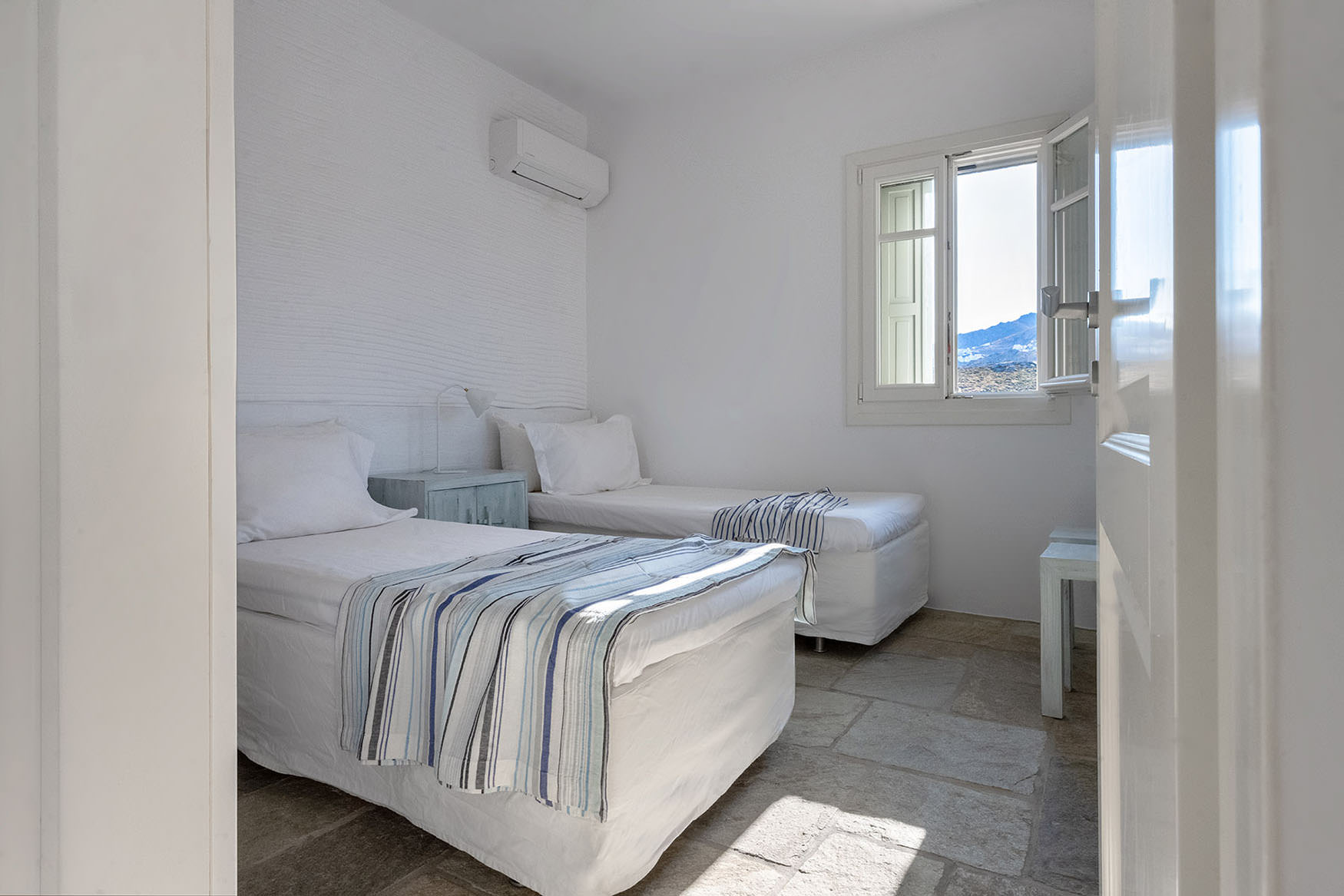 Η Βίλα Θαλασσί βρίσκεται στη δεξιά πλευρά του συγκροτήματος και η μεγάλη της βεράντα συνδέεται με ένα μέρος του φροντισμένου αρωματικού κήπου. Η θέα της είναι πανοραμική και ανεμπόδιστη προς το απέραντο γαλάζιο και προς τη Χώρα του νησιού. Είναι κοντά στο χώρο στάθμευσης και είναι ιδανική για όσους θέλουν να έχουν ευκολότερη πρόσβαση σε αυτό. Διαθέτει πλήρως εξοπλισμένη κουζίνα η οποία είναι στον ίδιο χώρο με το καθιστικό και οι 2 κρεβατοκάμαρες διαθέτουν η μία διπλό κρεβάτι και η δεύτερη 2 μονά κρεβάτια που μπορούν να ενωθούν. Είναι ιδανική για 4 άτομα, αλλά μπορεί να φιλοξενήσει μέχρι και 5 άτομα.