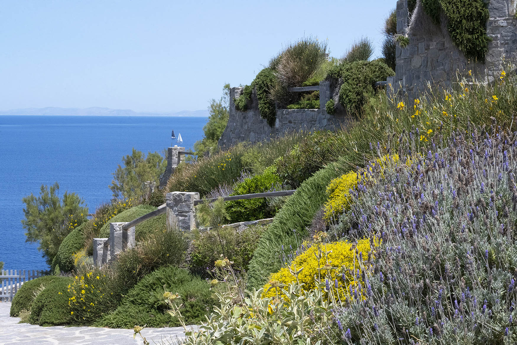 Το Aspes Villas περιβάλλεται από έκταση 5,5 στρεμμάτων χαρακτηριστικού κυκλαδίτικου τοπίου του οποίου η βιοποικιλότητα προστατεύεται και ενισχύεται συνεχώς με συστηματική προσπάθεια. Σπάνια αυτοφυή φυτά έχουν προστατευθεί και η επιπλέον φύτευση έχει γίνει αποκλειστικά με τα είδη της χλωρίδας που υπάρχουν στο νησί. Τα αρωματικά βότανα όπως το θυμάρι, η άγρια λεβάντα και σπάνια είδη λουλουδιών όπως η άγρια ορχιδέα, κοσμούν τα παρτέρια σε όλα τα επίπεδα του κήπου.