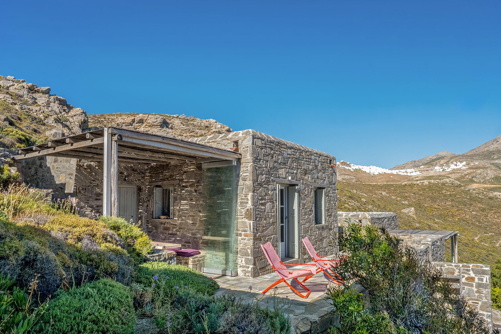 Villa Ammos is charming and convenient with a modern, fully-equipped kitchen, open plan living room area separate bedrooms with ample closet space (one with a double bed, the other with 2 singles that can be joined to create a double.). Top quality mattresses and bedding supports the comfort of your rest time and quality of your sleep. A spacious bathroom with a rainfall shower head. The villa is ideal for 4 people but can accommodate up to 5 comfortably.